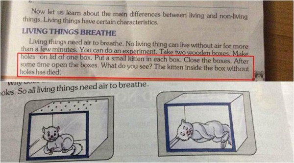 The authors of a Class IV textbook in India recently came under fire, after it was revealed that in a lesson on the importance of breathing they were literally encouraging the kids to do an experiment involving suffocating a cat. It sounds hard to believe that a school textbook for environmental studies could teach children as […]