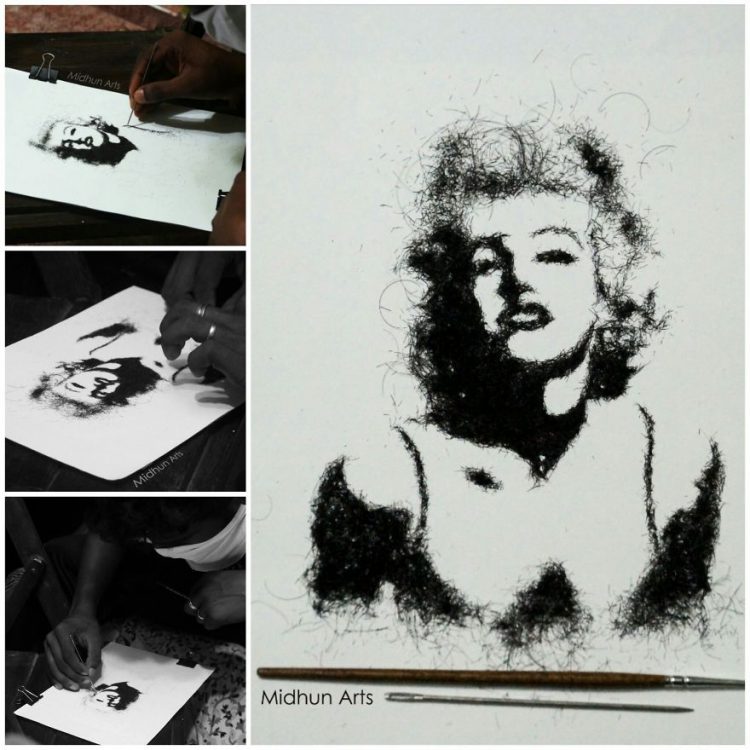 Indian Artist Creates Stunningly-Detailed Portraits Using Human Hair