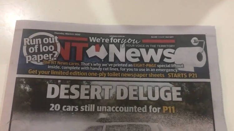 This Thursday, the NT News, a local newspaper in Australia’s Northern Territory, printed an extra eight blank pages for readers to use in a pinch, as a way to mock the pointless toilet paper hoarding caused by the spread of the coronavirus. “Run out of loo paper? The NT News cares,” the front page of […]