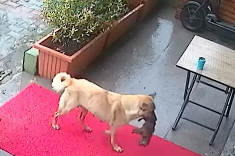 Desperate Canine Mother Carries Unconscious Puppy to Vet Clinic