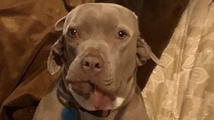 Toad, a five-year-old grey pitbull mix, suffers from a very rare deformity – she has a second mouth, complete with teeth and salivating glands, growing on the side of her head where her right year should be.