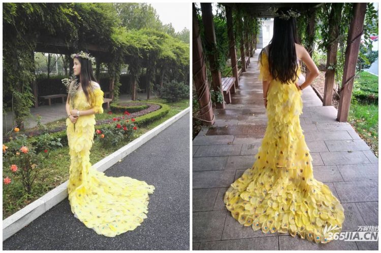 Four sophomore students at the University of Hefei, in eastern China, recently proved that you don’t have to spend a small fortune on a designer dress to look stunning. You can make it yourself, for free, using only plant leaves.