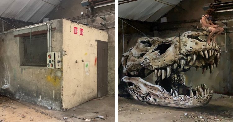 Looking at SCAF’s expertly spray-painted trompe l’oeil graffiti artworks, it’s hard to believe that he is a completely self-taught street artist. He never studied art and started experimenting with graffiti in abandoned factories 18 years ago, after being inspired by a colleague at school. He has come a long way since his early days, as you can plainly see, but he continues to practice his skill in abandoned places, like factories, houses and manors, because he feels like his art adds value to such derelict edifices.