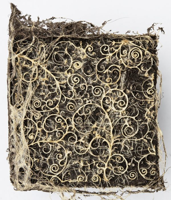 “In his book The Power of Movements of Plants, he describes how roots do not passively grow down, but move and observe. A root navigates, knows what’s up and down, observes gravity and localizes moisture and chemicals. Darwin discovered that plants are a lot more intelligent than everybody thought,” Diana Scherer writes. “For contemporary botanists, this buried matter is still a wondrous land. There is a global investigation to discover this hidden world. I also want to explore it and apply the ‘intelligence’ of plants in my work.”