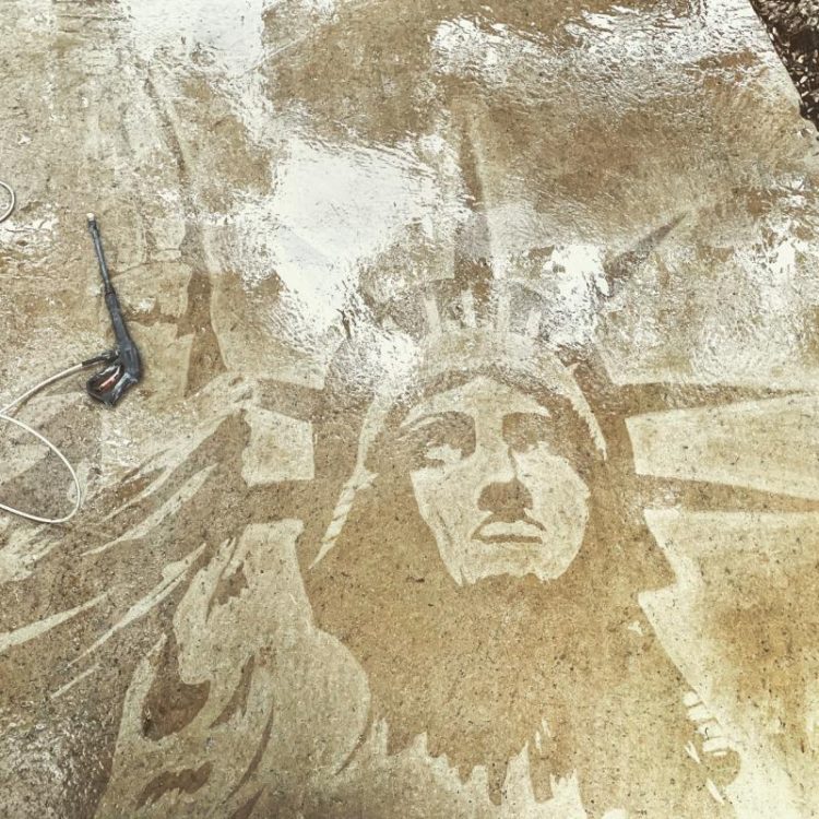 Sam Ward, a self-taught artist who specializes in creating ephemeral artworks on concrete using a power washer, has been nicknamed ‘Power Washer Van Gogh’. Sam