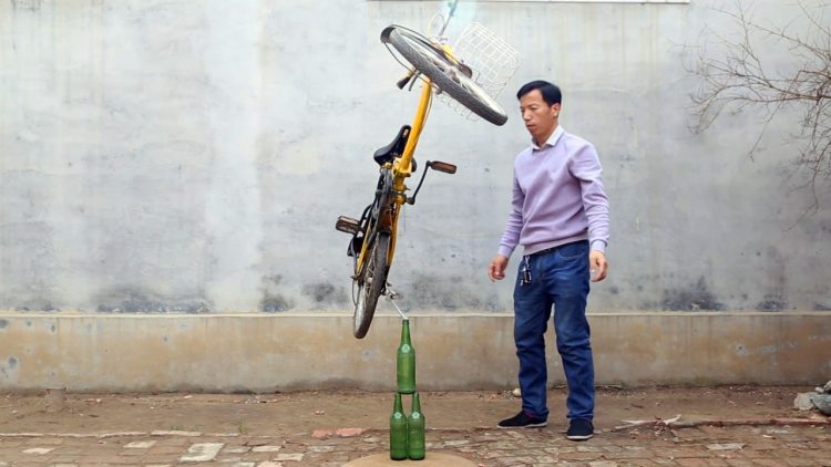 Wang Yekun is an exceptionally patient artist who spends hours trying to balance all sorts of objects that have no business sitting on top of