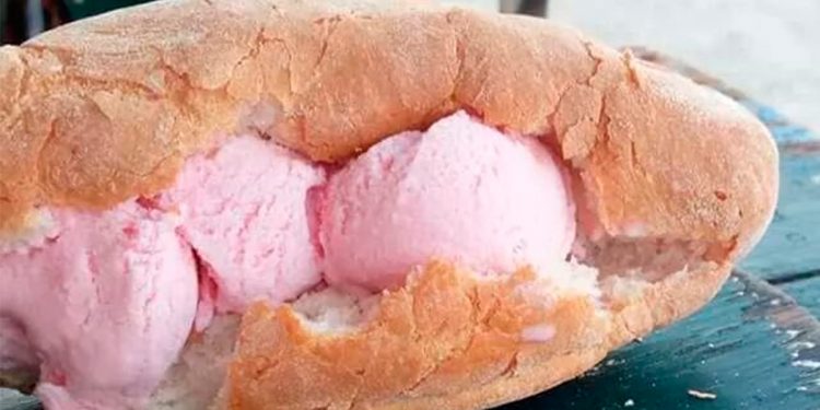 When they hear the phrase “ice cream sandwich”, most people think about creamy ice-cream squeezed between two waffers or cookies, but in Mexico, it can mean a regular bun stuffed with scoops of ice-cream.