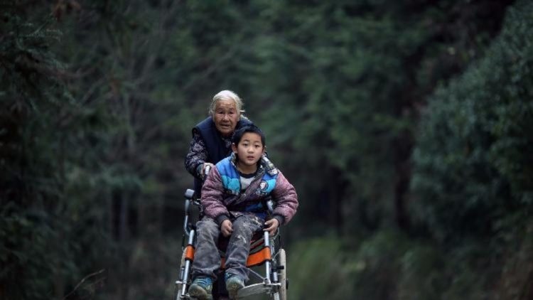9-year-old Jiang Haowen was diagnosed with cerebral palsy when he was 2-years-old, and his parents divorced a couple of years later. His mother remarried several times and his father went to work in Guilin to support the boy and pay for his treatments. So he fell in the care of his grandmother, Shi Yuying. She not only pushes the boy to and from school several times a day, but she also massages his limbs, prepares all kinds of herbal medicines for him in hopes of improving his condition, and also pushes him to walk with support. Pretty much everything she does is for Haowen.