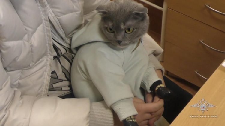 It’s not easy to pass off a feline as a human baby, but the suspected drug dealer did her best. Photos and videos released by the Russian Interior Ministry show the cat wearing a baby hat, a onesie, tiny boots, and even a diaper. But what surprised everyone the most was how calm the cat seemed despite her unusual attire, it was like she had been trained for this.