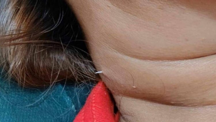 The second doctor also performed an X-ray of her neck, per procedure, but noticed nothing unusual, so she prescribed some medicine and painkillers and sent the woman on her way. At home, while preparing to apply a pain relief patch on her neck, Sang Lan started rubbing the painful area she was about to stick it on when she noticed a pointy needle pressing against her skin from underneath. After applying a bit of pressure, a white needle head pierced the woman’s skin.