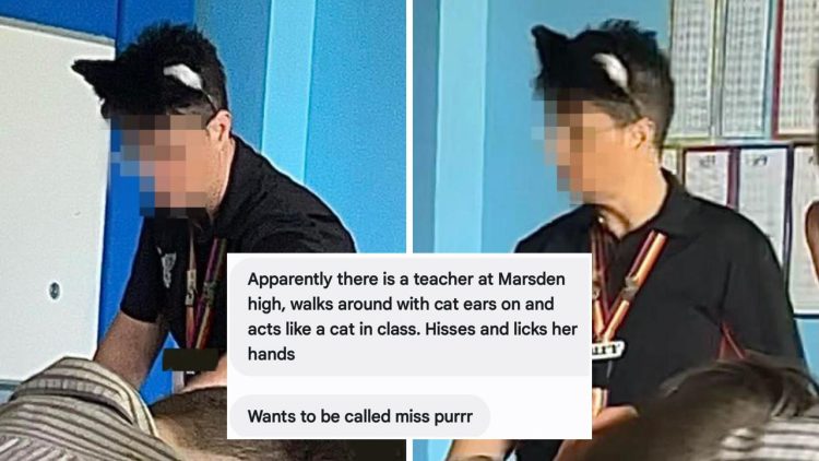 Australian media have been reporting on the bizarre case of a teacher at Marsden State High School in Logan City, Queensland, who reportedly asked students to refer to her as “Ms. Purr”, allegedly hissing at students and licking the back of her hand. Photos of the unnamed teacher show her wearing a cat-ear headband and a lanyard that reads “purr” in class, which further fueled parents’ concerns that she was behaving inappropriately in class. One parent claimed that the teacher made her daughter purr for a lollypop, while another said that the teacher growled at students if they weren’t paying attention in class.