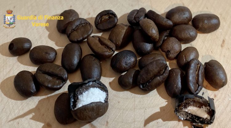 Inside the packaging was a 2-kilogram bag of fine Colombian coffee beans, one of the South-American country’s main exports. There was nothing suspicious about the contents at first glance, but a closer look revealed that some of the beans had slightly darker spots. After opening the bags for closer inspection, the officers of the Fiamme Gialle di Malpensa realized that those darker spots were discrete bits of adhesive tape.