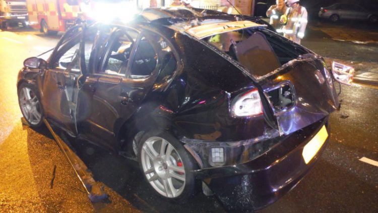 Photos of the car show that the explosion was much worse than the police statement suggests. Not only are all the windows broken, but the metal on the doors looks deformed by the blast, the rear bumper is barely hanging on, the tail lights are all blown up and out of their sockets, and even the roof of the vehicle appears detached.