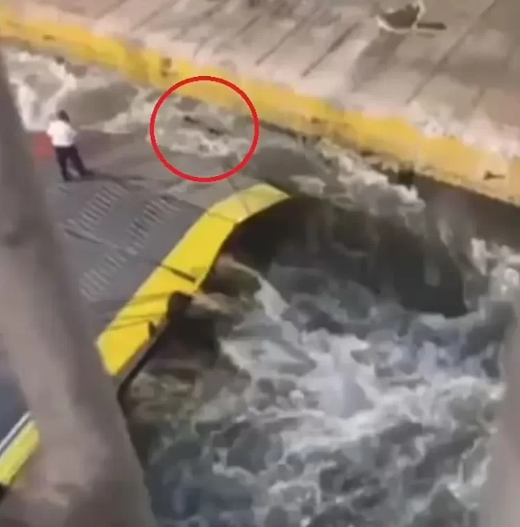 En ambos se ve a cinco empleados acudir a la rampa y observar quietos a Kariotis, que peleaba por mantenerse a flote. La tripulación, que había causado el… pic.twitter.com/5xNtWsNVaz