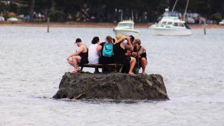 Public drinking was banned on the entire Coromandel Peninsula of New Zealand during New Year’s Eve celebrations, in order to deter violence, and would-be offenders faced fines of up to $250. Police reportedly patrolled on Saturday and Sunday to enforce the ban and make sure everyone got the message, but they couldn’t really do anything about a group of young revelers casually enjoying a drink or two on a small island that they had built themselves just a few feet from shore, in the town of Whangamata.