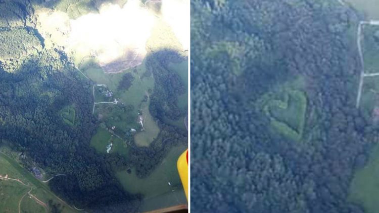 The crew of a Auckland Westpac Rescue Helicopter flying over a forested region near Kaipara Falls, in New Zealand, spotted a bunch of trees planted in the shape of a heart, in the middle of a small forest.
