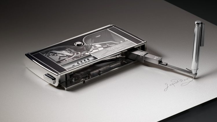 But what happens if you somehow misplace this small Signing Machine, or if it gets stolen? Someone could theoretically use it to sign your life away. Don’t worry, though, as Jaquet Droz claims that the machine can only be activated by a code chosen by the owner.