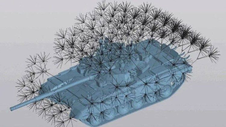 A Russian company has patented a tank protection system against First-Person View (FPV) drones that makes the vehicles look like giant dandelions.